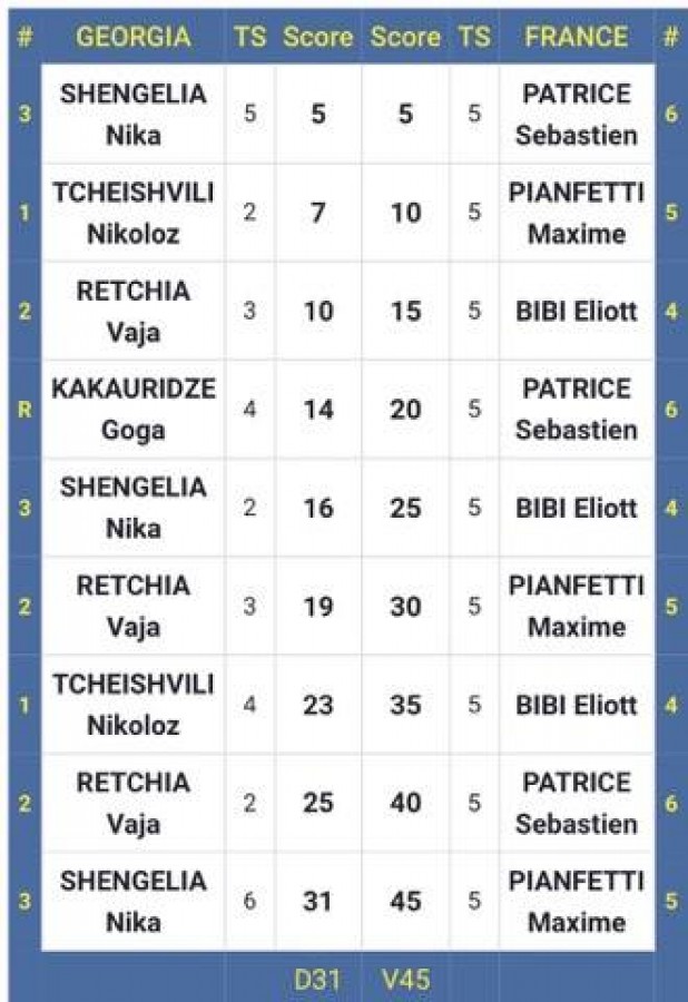 ასპარეზობაში 16 გუნდი ჩაება, მერვედფინალში საქართველოს ნაკრები (ვაჟა რეჭია, ნიკა შენგელია, გოგა კაკაურიძე, ნიკოლოზ ჭეიშვილი) საფრანგეთის საკმაოდ ძლიერ ნაკრებს დაუპირისპირდა და 31:45 დამარცხდა.