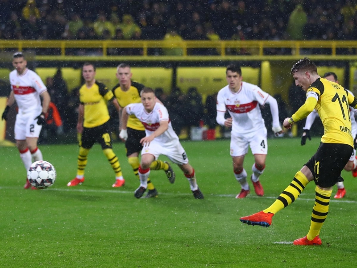 "ბორუსიას" კი "შტუტგარტთან" დაპირისპირებაში აშკარად გაუჭირდა. მართალია ლუსიენ ფავრის გუნდს ბურთის ფლობის 75%-იანი მაჩვენებელი ჰქონდა და კარში რვაჯერ დაარტყა, თუმცა მეტოქის გატეხვა ბოლო ათ წუთში შეძლო. პირველი გოლი მარკო როისმა 62-ე წუთზე გაიტანა და ცხრა წუთში მარკ-ოლივერ კემპფმა ანგარიში გაათანაბრა - ეს იყო ერთადერთი ზუსტი დარტყმა კარში, რაც სტუმრებმა 90 წუთის განმავლობაში შეძლეს. შეხვედრაში გარდატეხა კი პაკო ალკასერმა მოახდინა, ესპანელმა საჯარიმოში არეულობის შედეგად ისარგებლა და "დორტმუნდი" დააწინაურა. მსაჯის მიერ კომპენსირებულ დროში კი თავი კრისტიან პულიშიჩმაც გამოიჩინა.