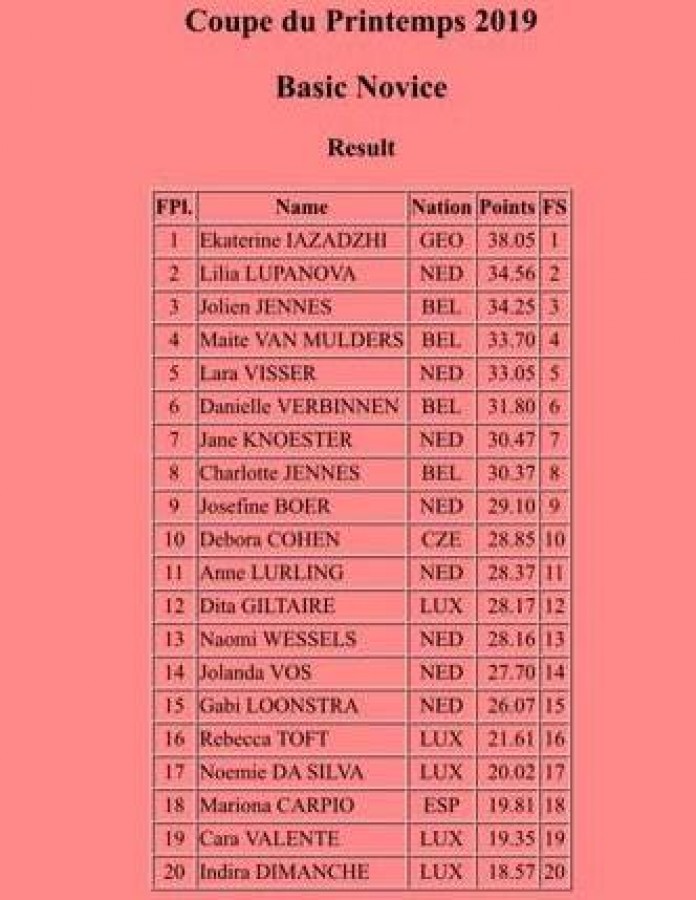 იაზადჯიმ 38.05 ქულა მოაგროვა და ოც მონაწილეს შორის პირველი ადგილი დაიკავა. მეორე-მესამე პოზიციები ჰოლანდიელ და ბელგიელ გოგონებს ერგოთ.