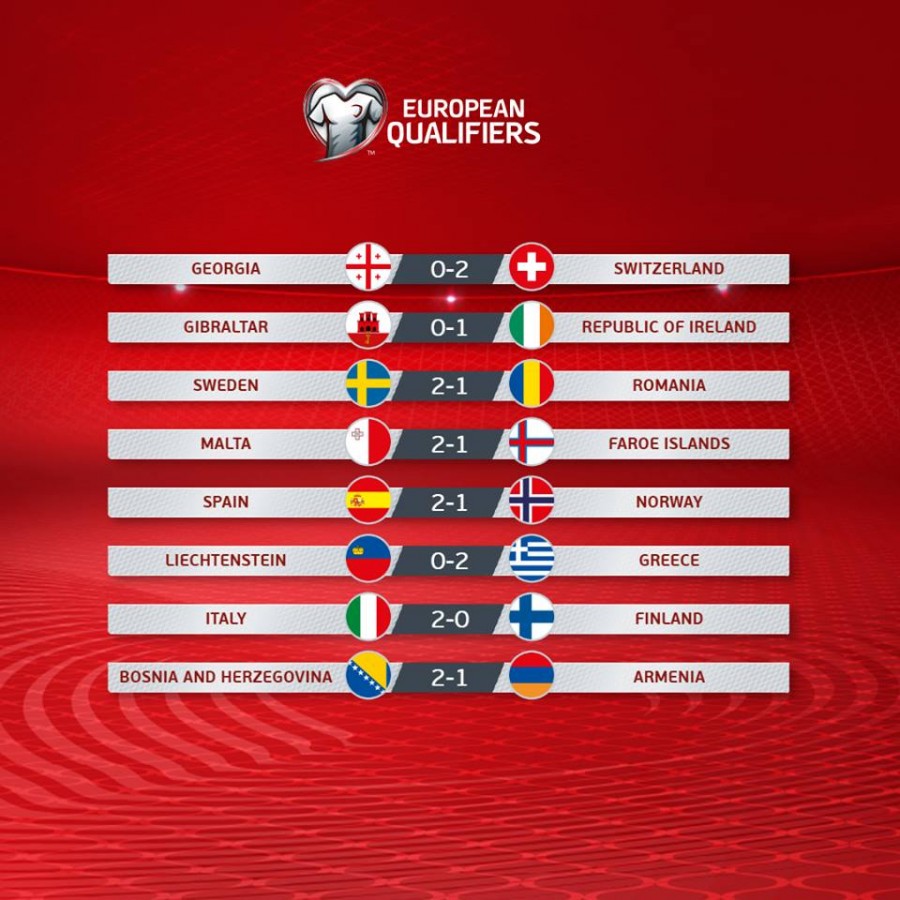 ჯგუფის დანარჩენ ორ მატჩს რაც შეეხება - ბოსნიამ სომხეთს აჯობა, ხოლო საბერძნეთმა სტუმრად ლიხტანშტაინი მოკრძალებულად, მაგრამ უპრობლემოდ დაამარცხა.