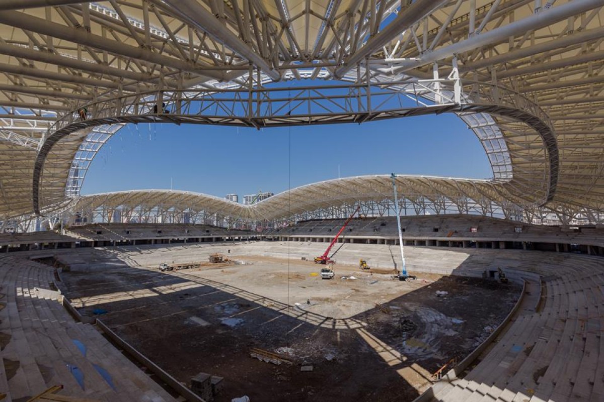 ბათუმის სტადიონზე კომპოზიტური მემბრანით ტრიბუნების გადახურვა დასრულდა, შემდეგი ნაბიჯი კი გარე ფასადის მოწყობა და ინდივიდუალური სკამების მონტაჟი იქნება.