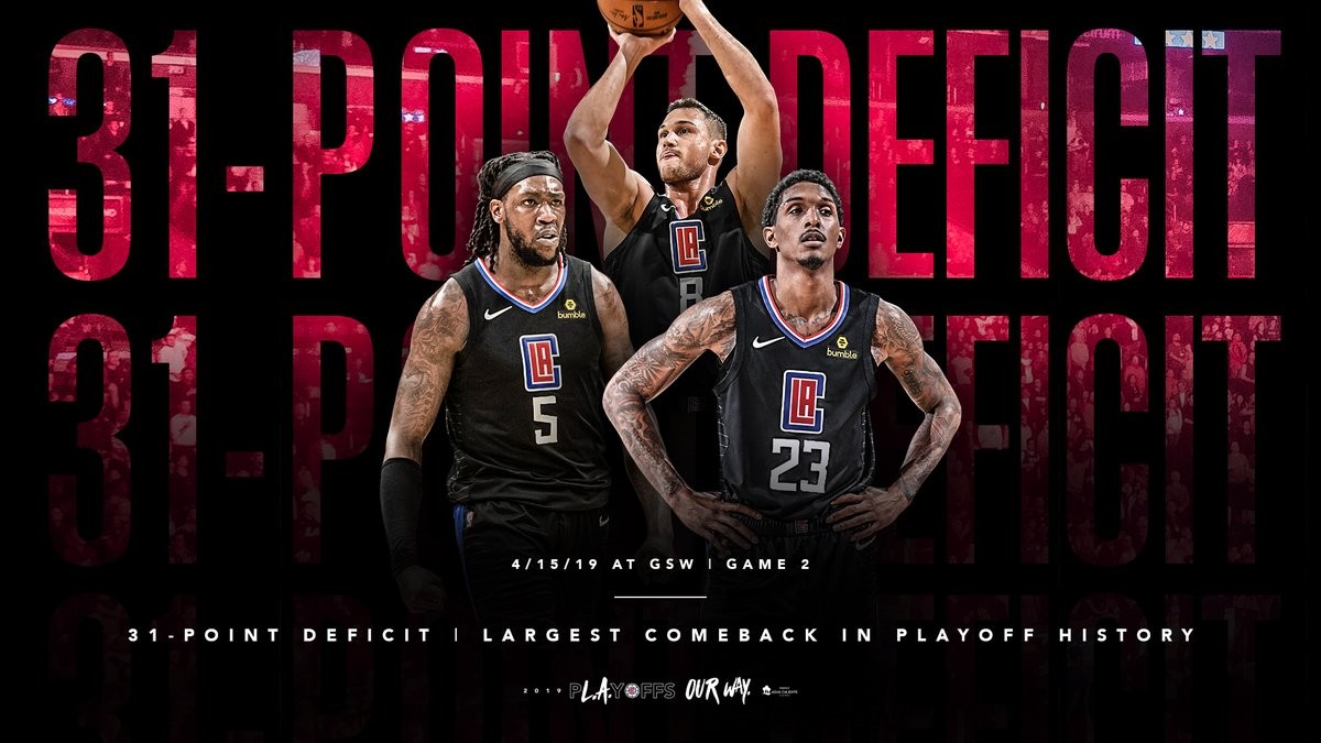 მესამე პერიოდში „მეომრები“ 94:63-ს იგებდნენ. „კლიპერსმა“ ნბას პლეი ოფების რეკორდი დაამყარა, 31-ქულიანი ჩამორჩენა აღმოფხვრა. აქამდე რეკორდი „ლეიკერსს“ ეკუთვნოდა, რომელმაც 1989 წელს „სიტელთან“ 29 ქულით აგებდა, მაგრამ საბოლოოდ 97:95 მოიგო.