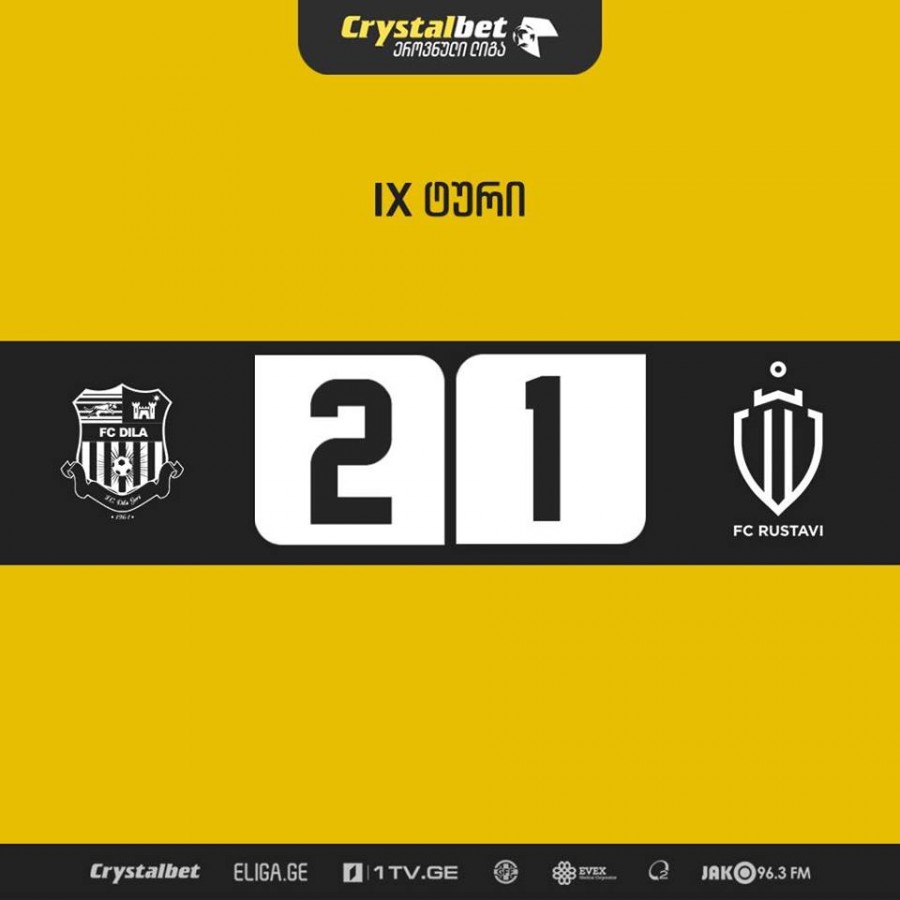 კრისტალბეთ ეროვნული ლიგის მეცხრე ტურში გორის "დილამ" "რუსთავი" 2:1 დაამარცხა და წარუმატებელი სერია შეწყვიტა. შიდაქართლელებმა ბოლო ოთხი მატჩი წააგეს, მათ შორის ერთი საქართველოს თასზე.