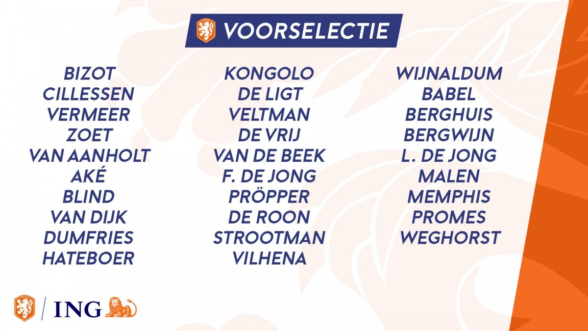 ჰოლანდიის ნაკრების მთავარმა მწვრთნელმა რონალდ კუმანმა სექტემბერში გასამართი მატჩებისთვის შემადგენლობა დაასახელა, რომელიც ასეთია: