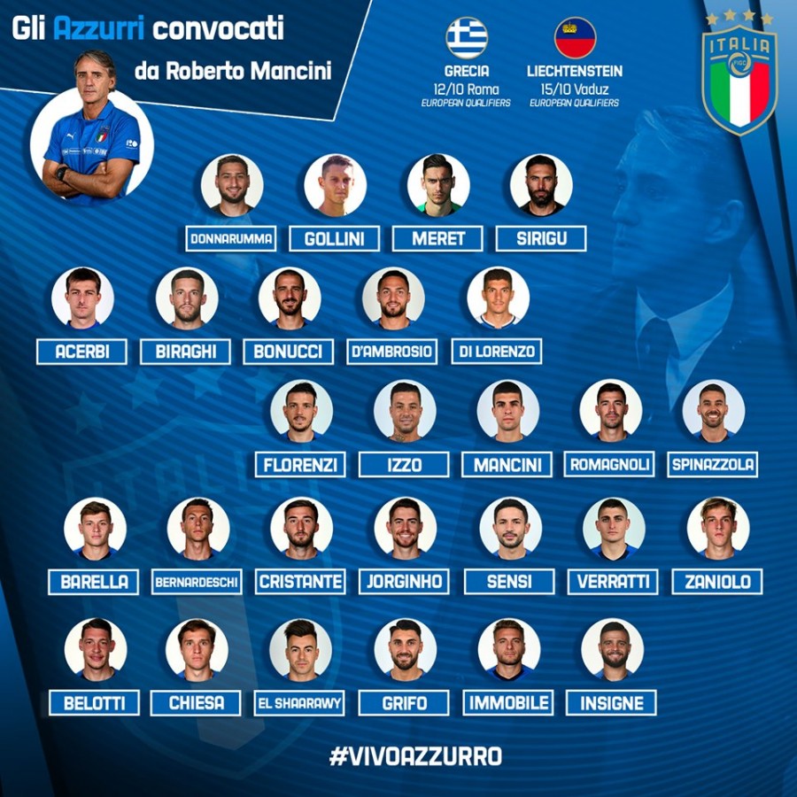 ვთქვათ, რომ იტალიის ნაკრების რიგებში ერთი დებიუტანტია, "ნაპოლის" მარჯვენა მცველი ჯოვანი დი ლორენცო. მთლიანობაში კი, რობერტო მანჩინიმ არჩევანი შემდეგ ფეხბურთელებზე შეაჩერა: