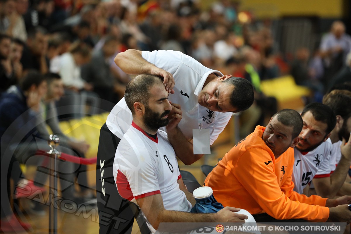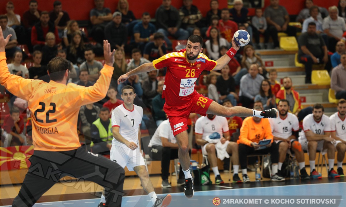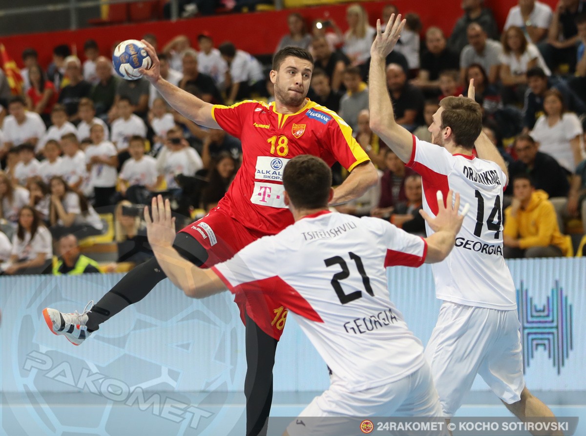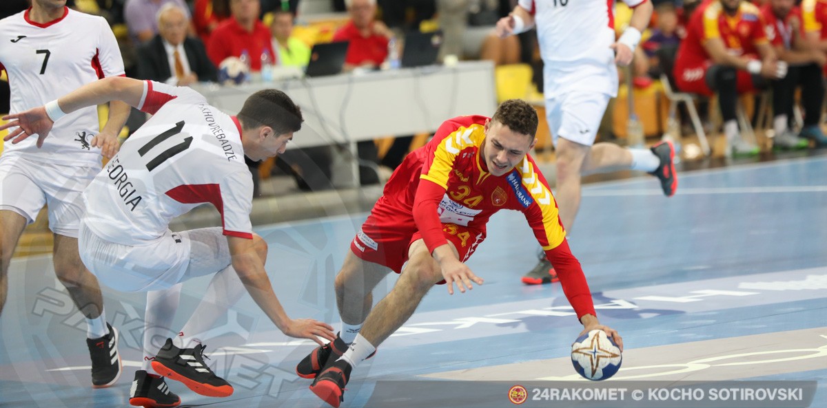 მაკედონია თავიდან 7-2 დაწინაურდა, მაგრამ გიორგი ცხოვრებაძის ზედიზედ 3 გოლის შემდეგ საქართველოს ნაკრები კვალში ჩაუდგა მეტოქეს და ტაიმის ბოლოს ანგარიშიც გაათნაბრა: 12-12, შესვენებაზე. მეორე ნახევარი მასპინძლებმა ისევ კარგად დაიწყეს (15-12), მაგრამ სტუმრებმა კვლავ გაათანაბრეს ანგარიში - 17-17 და რამდენჯერმე წინ გასვლაც შეეძლოთ. 55-ე წუთზე წუთით ადრე მაკედონია 1 ბურთით იგებდა, 22-21 და მხოლოდ დასრულებამდე 3 წუთით ადრე გაიფორმა გამარჯვება, როდესაც 24-21 დაწინაურდა. საბოლოოდ, 25-21. საქართველოს ნაკრებში ყველაზე შედეგიანი იყო მონპელიეს მარჯვენაფლანგელი, 18 წლის გიორგი ცხოვრებაძე, რომელმაც 9 გოლი გაიტანა (3 - შვიდმეტრიანიდან).