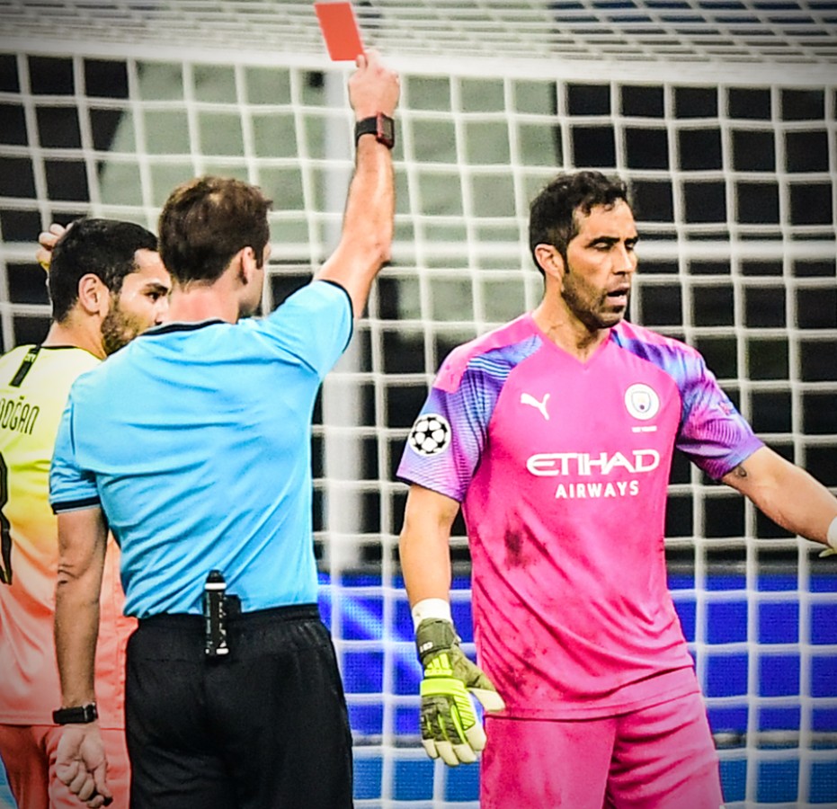 თუმცა, ჩილელმა კიპერმა ბოლო იმედის ჯარიმისთვის 81-ე წუთზე წითელი ბარათი მიიღო და მოედანი დატოვა. გვარდიოლას ერთი ცვლილება დარჩენილი ჰქონდა, მაგრამ ბუნებრივია სათადარიგო სკამზე მესამე მეკარე აღარ ჰყავდა. ამიტომაც, იძულებული გახდა მეკარის ამპლუაში გარჯა კაილ უოლკერისთვის დაევალებინა.