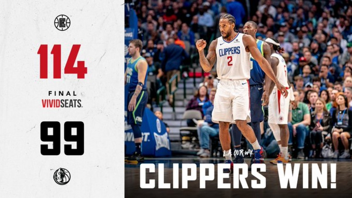 „კლიპერსმა“ გასვლაზე „დალასს“ 114:99 მოუგო. ლოს ანჯელესელები პირველი პერიოდის ბოლოსკენ დაწინაურდნენ, რის შემდეგაც ტეხასელები სულ მდევრის როლში იყვნენ. მატჩში ყველაზე მეტი 28 ქულა კავაი ლეონარდმა ჩააგდო. პოლ ჯორჯს 26 ქულა ჰქონდა. ლუკა დონჩიჩმა 22 ქულა, 8 მოხსნა და 6 პასი მიითვალა. „კლიპერსი“ 13 მოგებით და 5 წაგებით დასავლეთ კონფერენციაში მესამე ადგილზეა, ამავე კონფერენციაში მეოთხე პოზიციას „დალასი“ იკავებს.