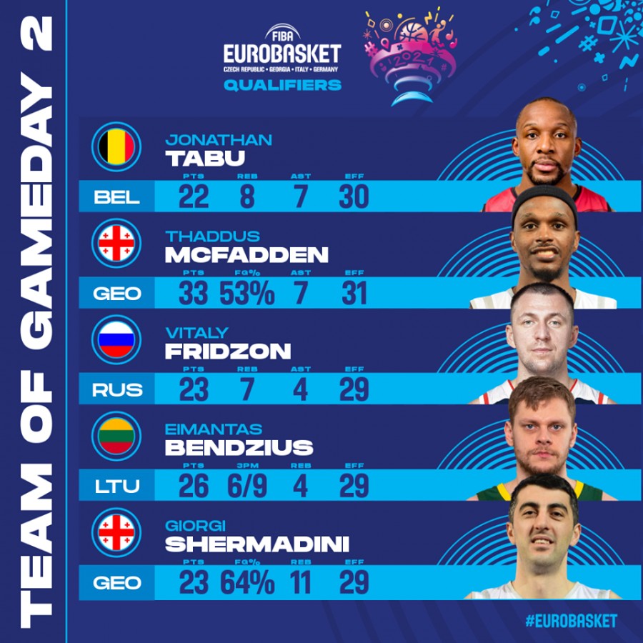 ბელგრადის საღამოს გმირები - გიორგი შერმადინი და თადუს მაკფადენი. ქართველმა ცენტრმა სერბეთთან ორმაგი დუბლი შეასრულა, 23 ქულა და 11 მოხსნა მიითვალა, ხოლო მისი მარგი ქმედების კოეფიციენტი 29-ს გაუტოლდა. რაც შეეხება მაკფადენს, ის მატჩის MVP გახდა 31 ქულით, 7 პასით და 31 მარგი ქმედების კოეფიციენტით.