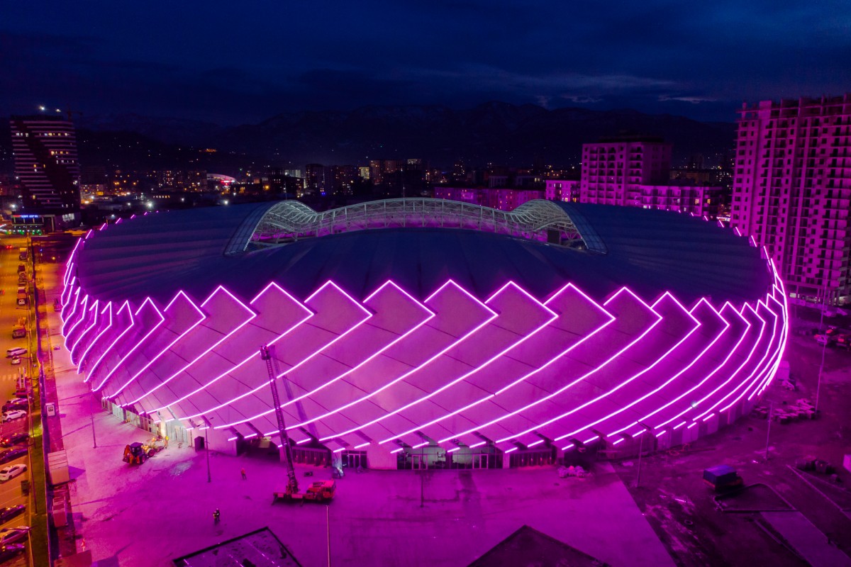 განათების პროგრამული და ტექნოლოგიური მოცემულობა საშუალებას იძლევა სტადიონის გარე ფასადი სხვადასხვა სახითა და ფორმით განათდეს.