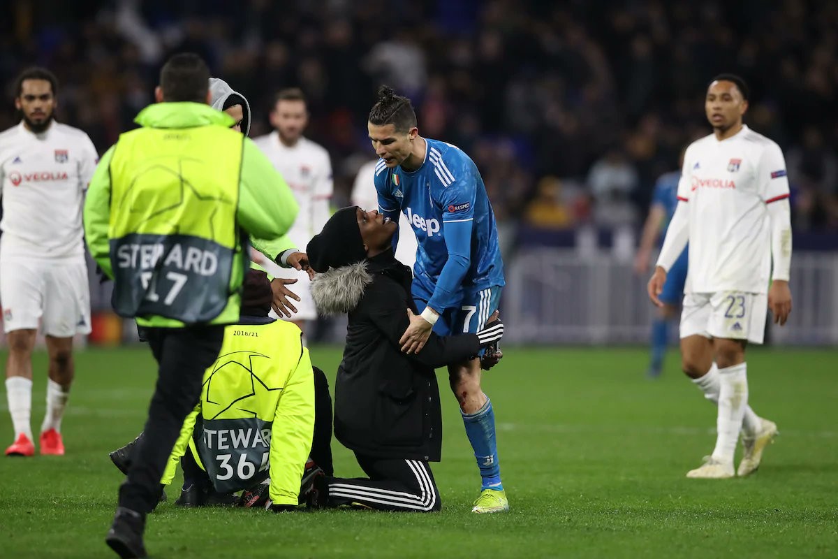 „ლიონისა“ და „იუვენტუსის“ მატჩის მიწურულს, მსაჯის კომპენსირებულ დროში მოედანზე გულშემატკივარი შეიჭრა და კრიშტიანუ რონალდუსთან სელფის გადაღება სურდა. თუმცა, ოცნება ვერ აიხდინა.