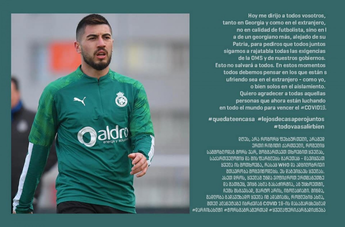საქართველოს ნაკრებისა და სანტანდერის „რასინგის“ ფეხბურთელმა გიორგი პაპუნაშვილმა სოციალურ ქსელში დაწერა, რომ დავიცვათ ყველა წესი, რომელსაც ჯანდაცვის მსოფლიო ორგანიზაცია მოგვიწოდებს.
