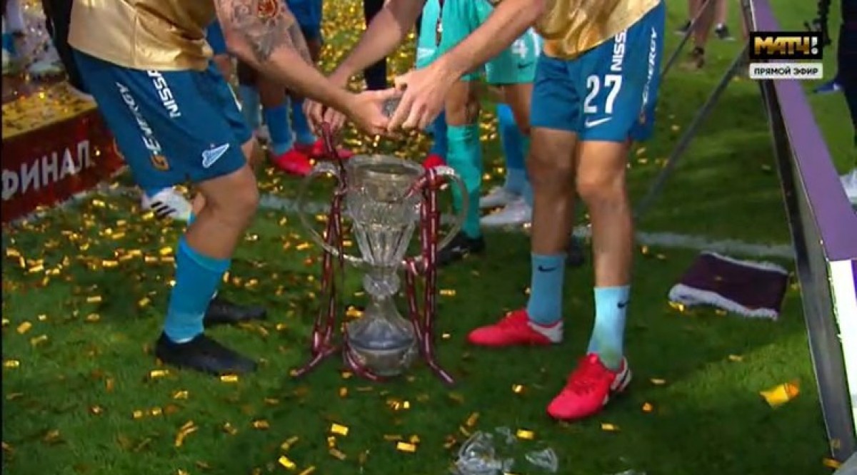 მატჩის შემდეგ, პეტერბურგელ ფეხბურთელებს, ზეიმისას თასი ხელიდან გაუვარდათ, ის მინდორზე დავარდა და ზედა ნაწილი დაუზიანდა.