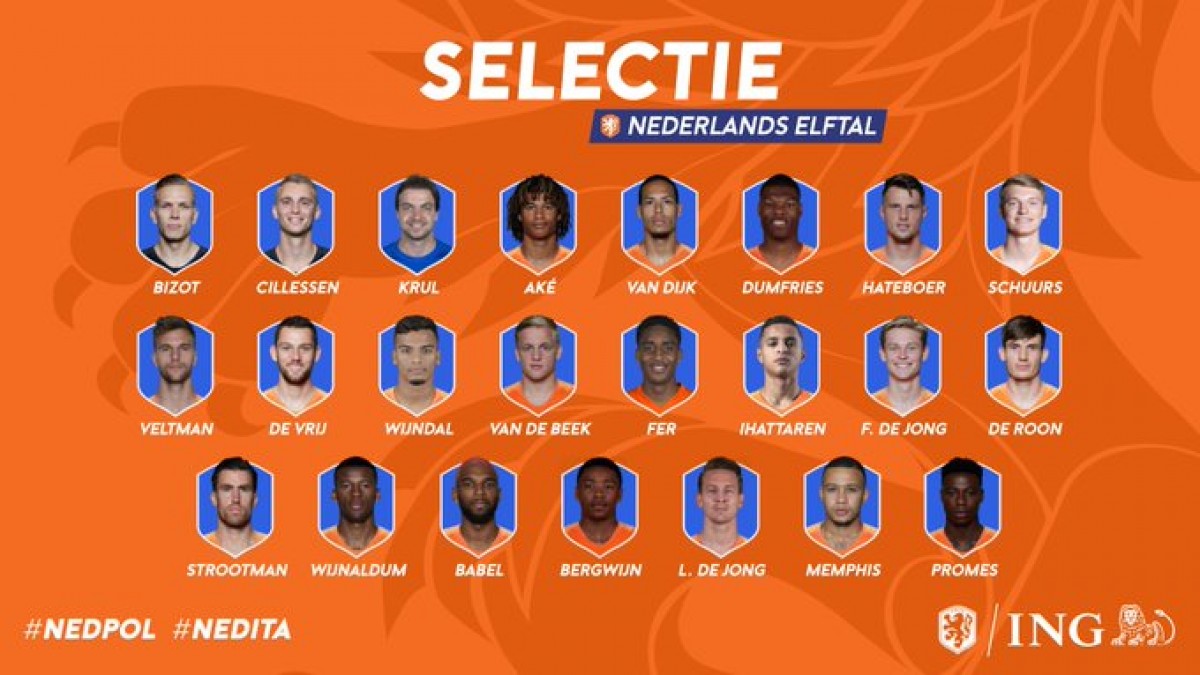 ნიდერლანდების ნაკრების მთავარი მწვრთნელის მოვალეობის შემსრულებელმა დუაიტ ლოდევეგესმა პოლონეთთან და იტალიასთან გასამართი ერთა ლიგის მატჩებისთვის გაფართოებული შემადგენლობა დაასახელა.