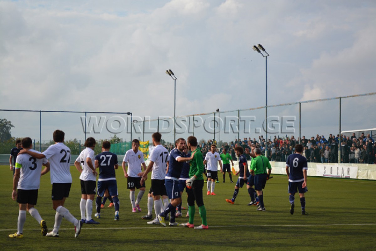 მიმდინარე ეროვნულ ჩემპიონატში ზუგდიდელები პირველად თამაშობდნენ საკუთარ კედლებში, ამიტომ მოგება ძალიან ეწადათ. მასპინძელთა უპირატესობა შეხვედრის დებიუტშივე გამოიკვეთა. მე-5 წუთზე რიგვავას გადაცემის შემდეგ შოთა ლომია საჯარიმოს კუთხესთან აღმოჩნდა და ძლიერად გაისროლა, თუმცა მიზანს მცირედით ააცილა. ორი წუთის შემდეგ ისევ ზუგდიდელთა კაპიტანი ცდილობდა თავის გამოჩენას, მაგრამ სამიზნემ ამჯერადაც დააღალატა.