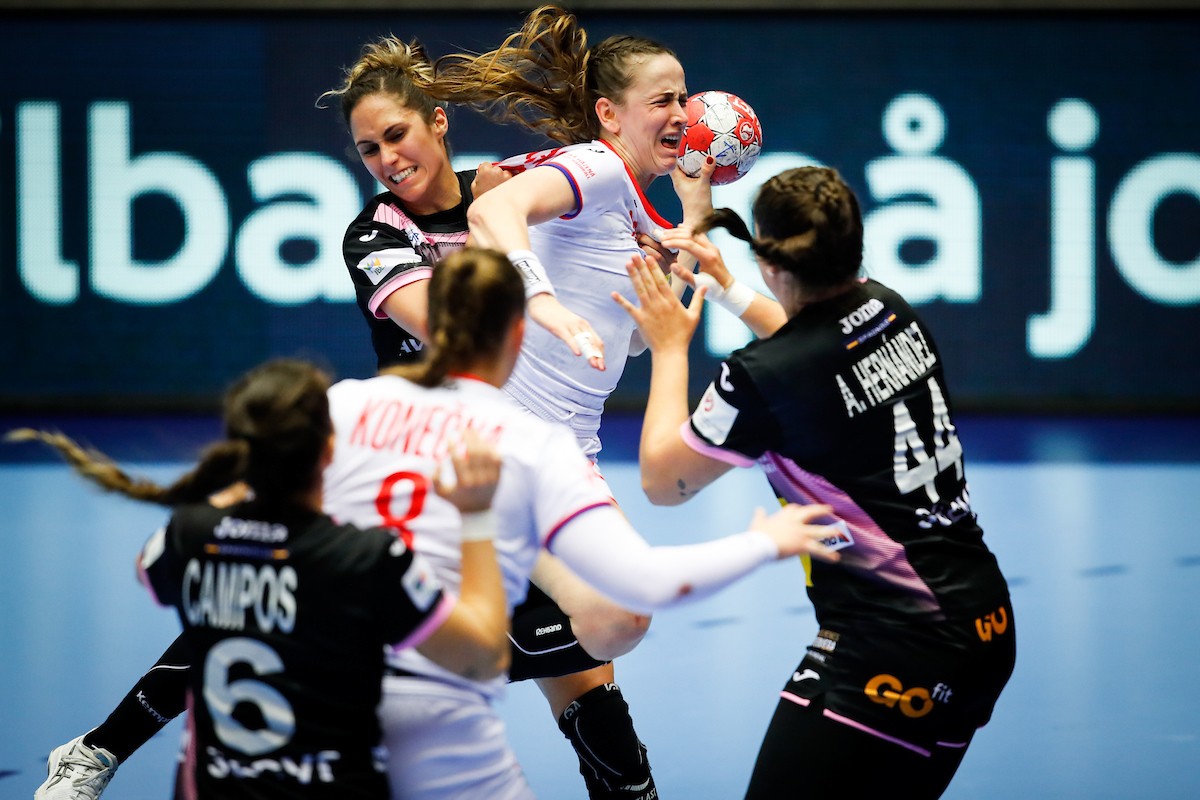 მსოფლიოს შარშანდელი ჩემპიონატის ფინალისტი, ესპანეთი, ძლივს გადააურჩა შინ გამგზავრებას. ჩეხეთმა 16-10 მოიგო პირველი ტაიმი და ამ სხვაობას 42-ე წუთამდე ინარჩუნებდა მეკარე კუდლაჩკოვასა და უკანახაზელ ერჟაბკოვას წყალობით: 22-16. თუმცა, თამაშის ბოლო მონკვეთი ესპანეთმა 11-2 მოიგო, ხოლო ვეტერანმა კარმენ მარტინმა ცხრიდან 9 შვიდმეტრიანი შეაგდო: 27-24, ესპანეთი შვედეთთან მოპოვებული 1 ქულით გავიდა მეორე რაუნდში.