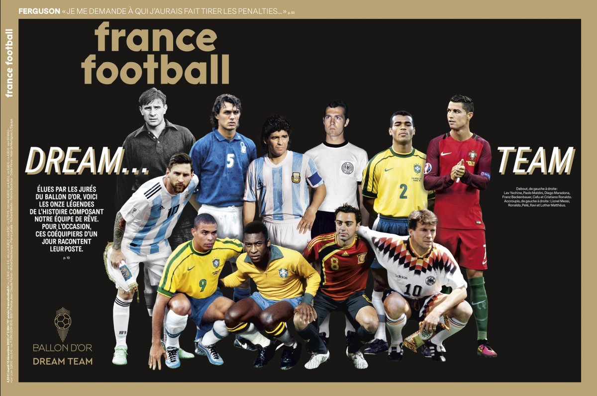 France Football-მა მსოფლიოს მასშტაბით სხვა და სხვა გამოცემის 140 ჟურნალისტი გამოკითხა და ყველა დროის საუკეთესო გუნდი შეადგინა.
