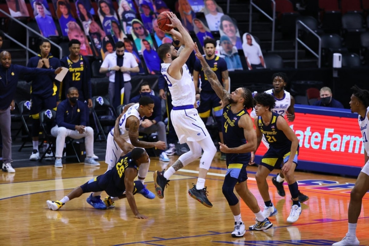 ამერიკის სტუდენტურ ლიგაში სანდრო მამუკელაშვილის „სეტონ ჰოლმა“ „გოლდენ იგლსი“ დაძაბულ ბრძოლაში 57:51 დაამარცხა, ხოლო ქართველმა კალათბურთელმა ორმაგი დუბლი შეასრულა.