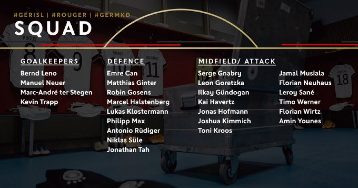 გერმანიის ფეხბურთის ფედერაციის ინფორმაციით, ლიოვის რჩეულთა სია შემდეგნაირად გამოიყურება: