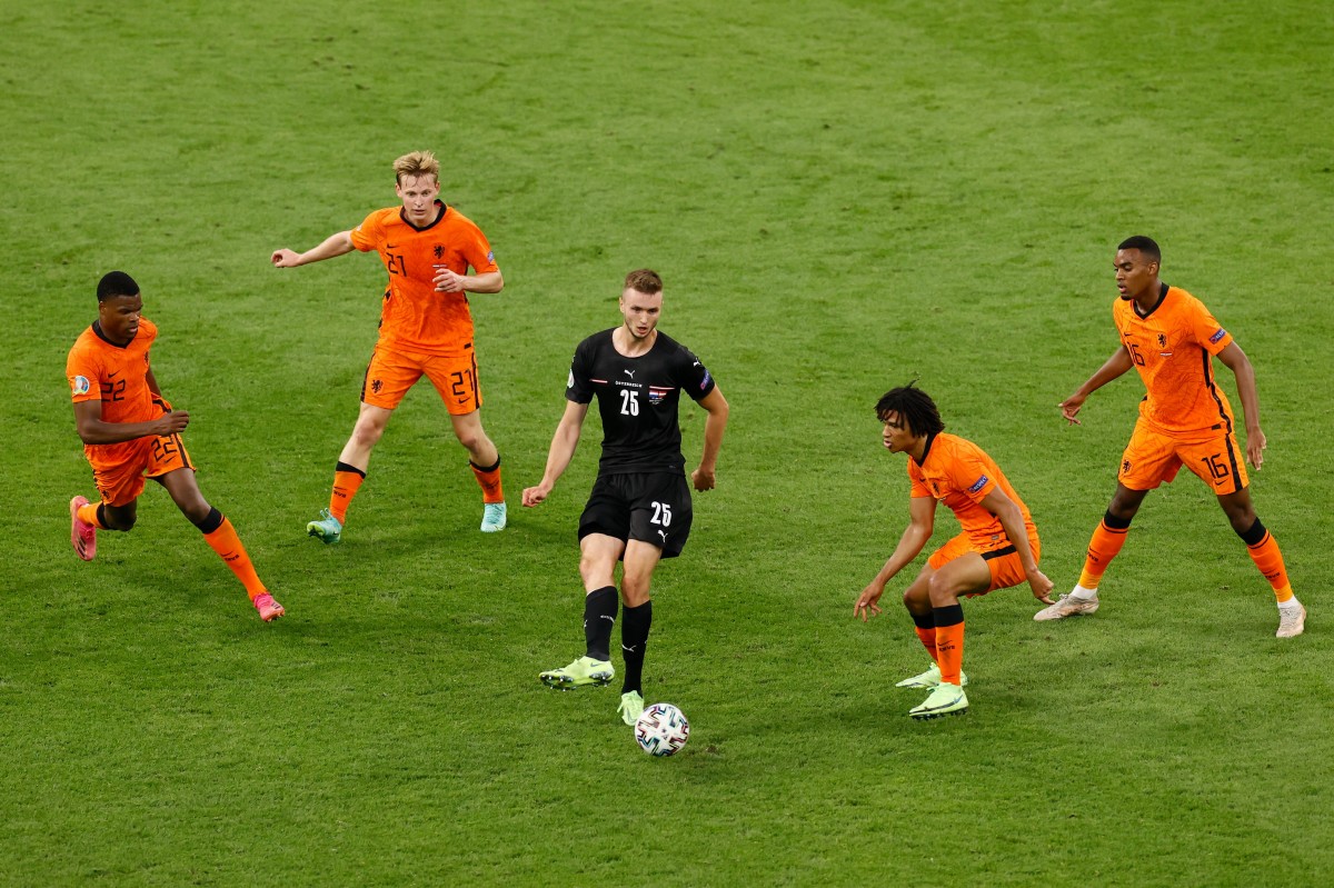 ფრანკ დე ბურის გუნდს პრობლემა არ შექმნია და მეტოქეს საკმაოდ ადვილად აჯობა. ანგარიში სწრაფად გაიხსნა. დენზელ დუმფრისი ევროპის ჩემპიონატს შესანიშნავ ფორმაში შეხვდა და მე-11 წუთზე პენალტი მოიპოვა, რომელიც გოლად მემფის დეპაიმ აქცია და თავისიანები დააწინაურა. პირველ ტაიმში პრინციპში მეტი აღსანიშნავი არც არაფერი მომხდარა - ნიდერლანდები არ (ვერ) ინდომებდა, ავსტრია კი ნამდვილად ვერ ახერხებდა მეტოქის შეწუხებას.