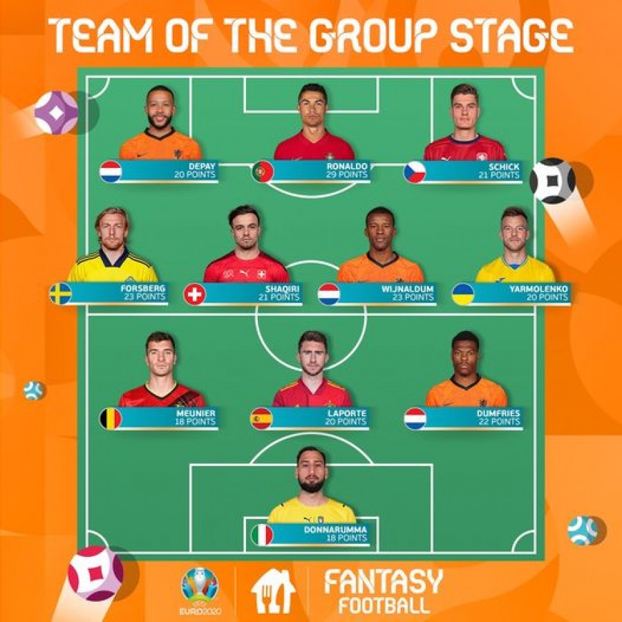 უეფამ ევროპის ჩემპიონატის ჯგუფური ეტაპის სიმბოლური ნაკრები გამოაქვეყნა, რომელიც Fantasy Football-ის ქულების მიხედვით შეადგინა.