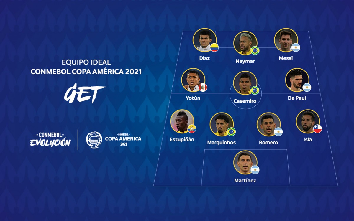 კონმებოლმა კოპა ამერიკის 2021 წლის გათამაშება შეაჯამა და ტურნირის სიმბოლური ნაკრები დაასახელა, რომელშიც ყველაზე მეტი წარმომადგენელი ჩემპიონ არგენტინას ჰყავს - 4.