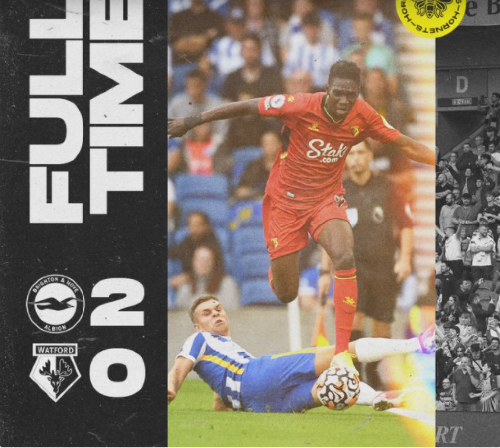პრემიერლიგის მეორე ტურში, „უოტფორდი“ „ბრაიტონს“ ესტუმრა და 2:0 დამარცხდა. ანგარიში მე-10 წუთზე შეინ დაფიმ გახსნა, 41-ზე კი ნილ მოპემ მეორედ აიღო დანიელ ბახმანის კარი.
