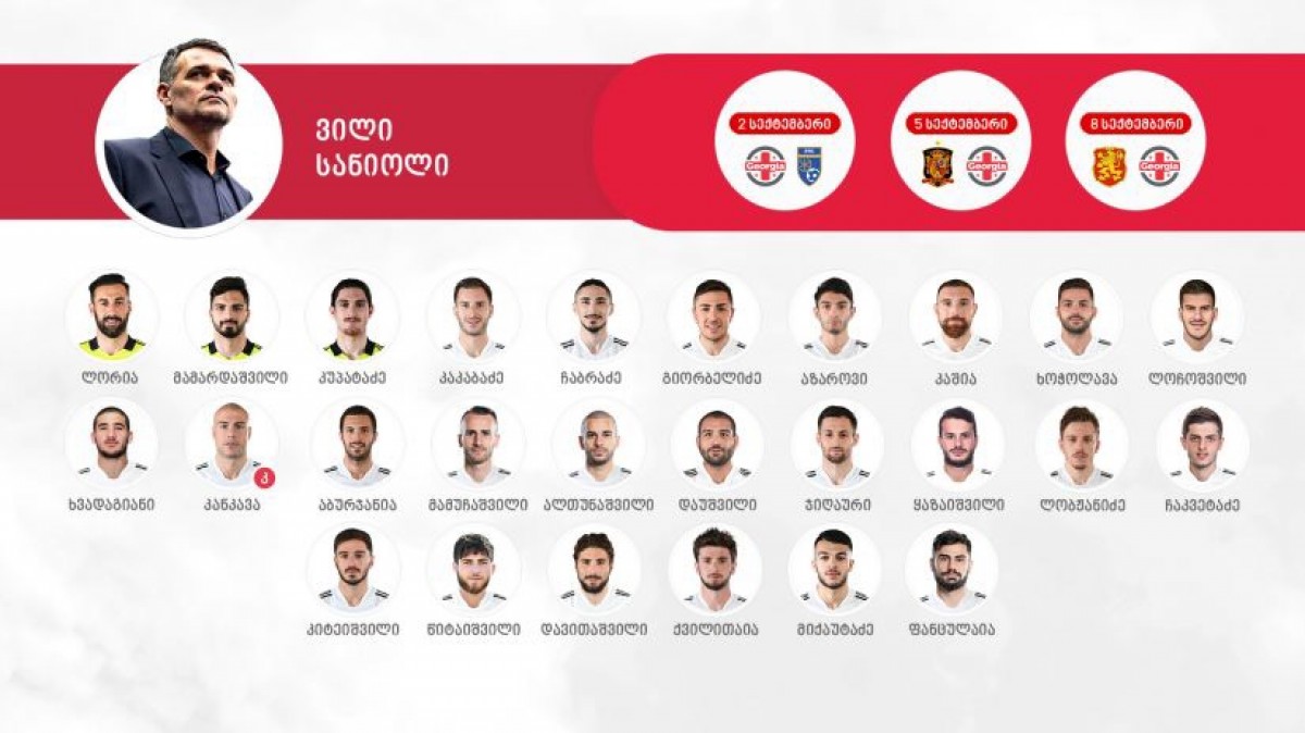 სექტემბერში დაგეგმილი მატჩებისთვის მზადებას ვილი სანიოლის გუნდი 30 აგვისტოდან დაიწყებს. საქართველოს ეროვნული ნაკრები საწვრთნელ შეკრებას 26 ფეხბურთელით შავი ზღვისპირეთში გაივლის. დეტალები იხილეთ ბმულზე.