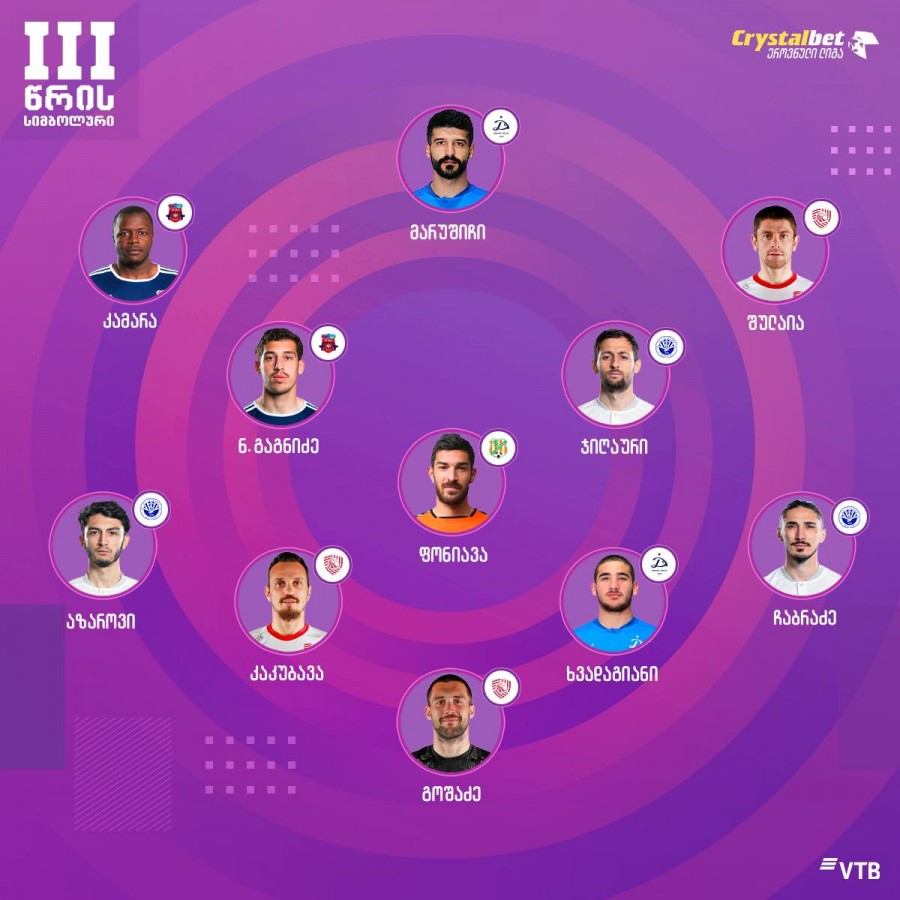 საქართველოს კრისტალბეთ ეროვნულ ლიგაში მესამე წრე შეაფასეს და საუკეთესო ფეხბურთელად „დინამო ბათუმის“ შემტევი ნახევარმცველი ჯაბა ჯიღაური დასახელდა.