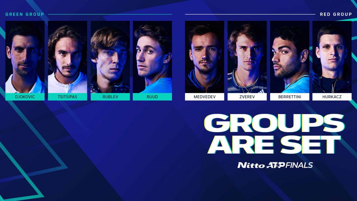 ტურინში ATP-ის წლის შემაჯამებელი ტურნირის წილისყრა გაიმართა და საუკეთესო რვა ჩოგბურთელი ჯგუფებში გადანაწილდნენ. მწვანე ჯგუფში მოხვდნენ მსოფლიოს პირველი ნომერი ნოვაკ ჯოკოვიჩი, სტეფანოს ციციპასი (5), ანდრეი რუბლიოვი და კასპერ რუდი (8). წითელ ჯგუფ კი შემდეგნაირად დაკომპლექტდა: დანილ მედვედევი (2), ალექსანდრ ზვერევი (3), მატეო ბერეტინი (7), ჰუბერტ ჰურკაჩი (9).