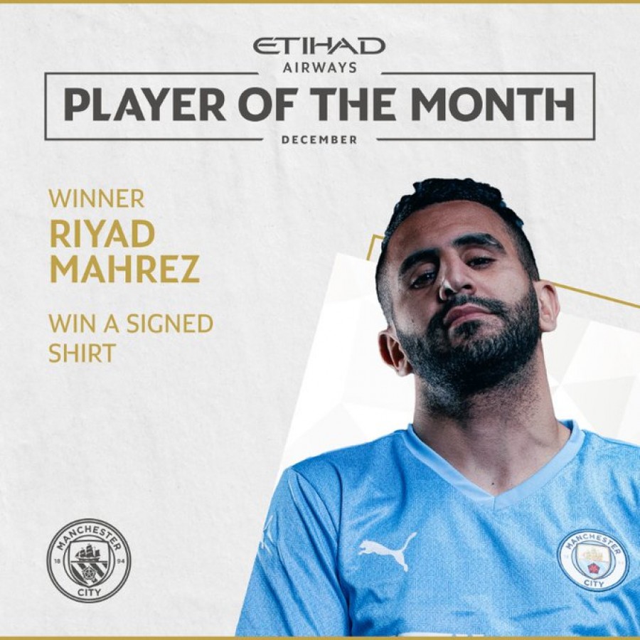 ალჟირის ეროვნული ნაკრების შემტევი რიად მაჰრეზი ინგლისელმა გულშემატკივრებმა "მანჩესტერ სიტის" დეკემბრის საუკეთესო ფეხბურთელად დაასახელეს. როგორც "ქალაქელების" ოფიციალური ვებგვერდი იუწყება, გამოკითხვაში ხმების 80 პროცენტი აფრიკელმა მიიღო, მეორე ადგილზე გავიდა კევინ დე ბრუინი (11%), ხოლო მესამეზე - რაჰიმ სტერლინგი (9 %).