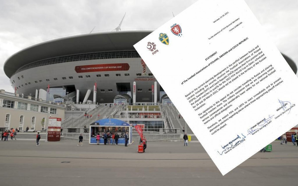 „პოლონეთის, შვედეთისა და ჩეხეთის ფეხბურთის ფედერაციები მკაცრად გმობენ რუსეთის აგრესიას უკრაინის წინააღმდეგ. არსებული ვითარებიდან გამომდინარე პოლონეთის, შვედეთისა და ჩეხეთის ფეხბურთის ასოციაციები თანხმდებიან, რომ მსოფლიოს ჩემპიონატის პლეი-ოფის მატჩები რუსეთში არ უნდა ჩატარდეს.