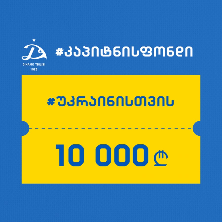 "დინამო თბილისმა" უკრაინის მხარდასაჭერად კიდევ ერთი აქტივობა განახორციელა. თბილისური კლუბი ჩვენი მეგობარი ქვეყნის დახმარების ფონდში 10 000 ლარს გადარიცხავს. აღნიშნული თანხის ნაწილი დინამო თბილისი - გორის დილას მატჩის ბილეთების რეალიზაციიდან შეგროვდა, ნაწილის მობილიზება კი, ახლად შექმნილმა კაპიტნის ფონდმა მოახდინა. თემაზე კომენტარი დინამო თბილისის კაპიტანმა გიორგი პაპავამ გააკეთა: