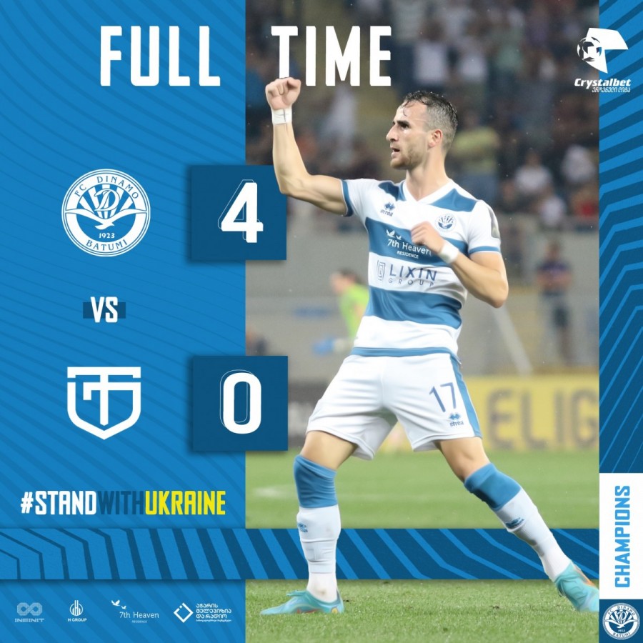 გოლები: 1:0 მამუჩაშვილი (39), 2:0 მამუჩაშვილი (53, პენ), 3:0 ჯოვინო (77, პენ), 4:0 გაფრინდაშვილი (89)