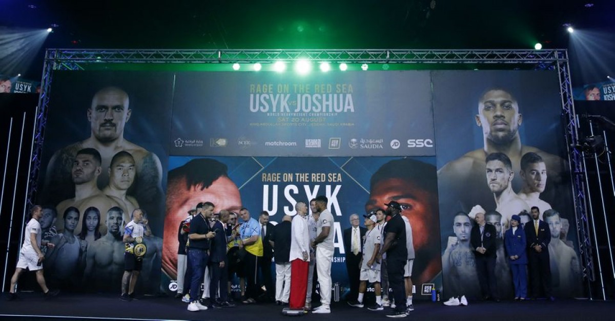 მძიმე წონაში მსოფლიო ჩემპიონის ტიტულებისთვის ბრძოლის წინ, რომელიც წითელი ზღვის პირას მდებარე ქალაქ ჯედაში (საუდის არაბეთი) მდებარეობს, ტიტულის მოცილეთა აწონვის და პირისპირ დგომის ცერემონია ჩატარდა.