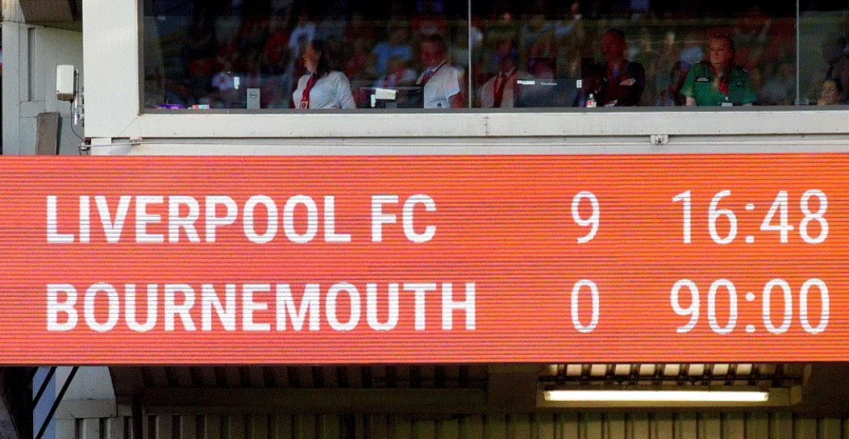 პრემიერლიგის მე-4 ტურის მატჩში „ლივერპულმა“ შინ „ბორნმუთს“ 9:0 მოუგო და ტურნირის შედეგიანობის რეკორდი გაიმეორა.