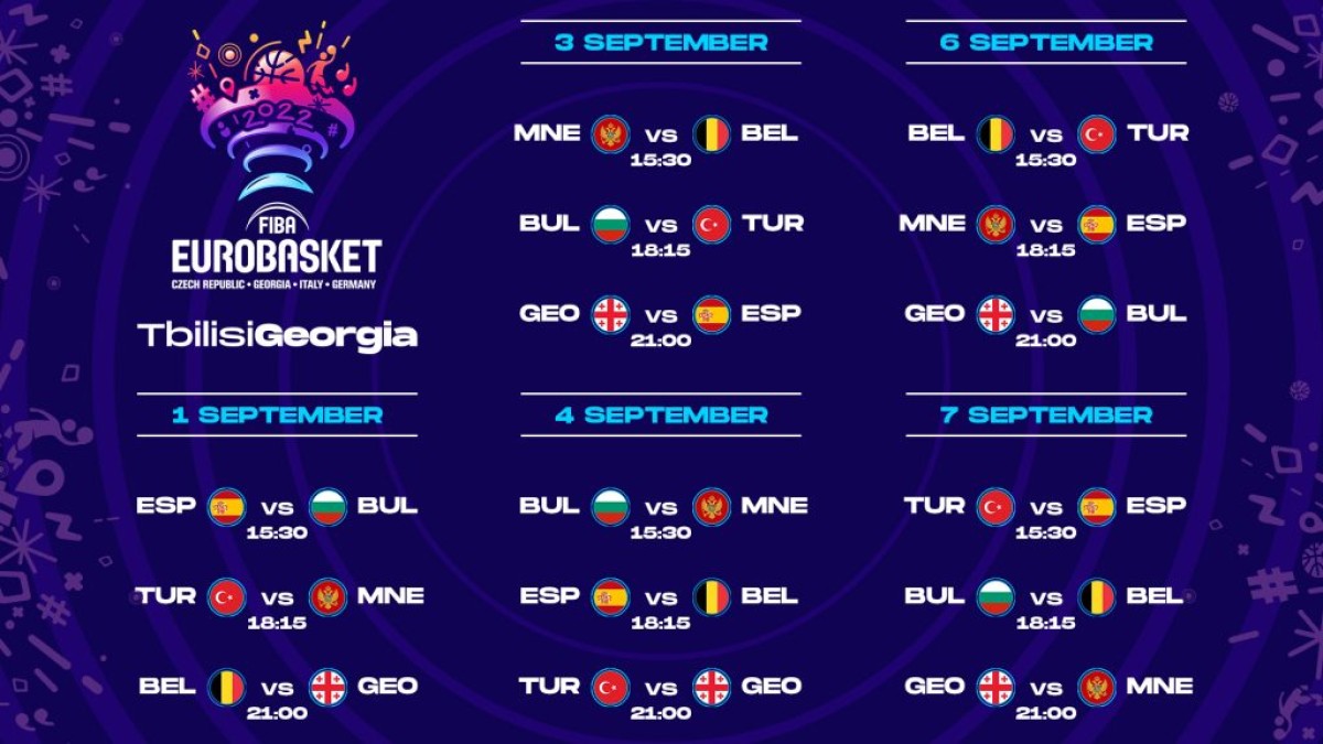 საქართველოში დღეს ევრობასკეტი იწყება! ევრობასკეტ-2022-ის „ა“ ჯგუფის თამაშები, სადაც ესპანეთის, თურქეთის, ბელგიის, ბულგარეთის, მონტენეგროს და საქართველოს ნაკრები გუნდები იღებენ მონაწილეობას, გაიმართება „თბილისი არენაზე“ (უნივერსიტეტის ქუჩა 15ა).