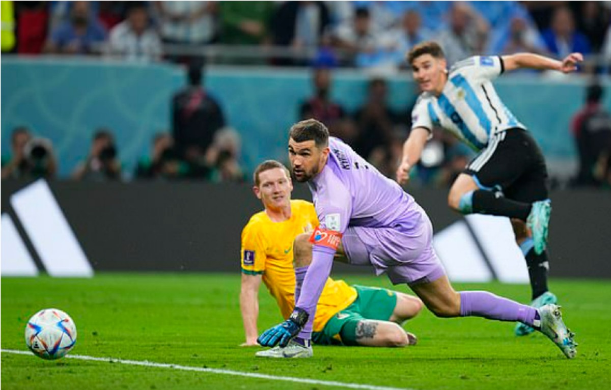 მეორე ტაიმში არგენტინელები უფრო პოზიციურად უტევდნენ და ერთ ეპიზოდში მეტოქის გამოცდილ მეკარეს შეცდომა დააშვებინეს. რაიანმა არაფრისგან მოიგონა მომენტი, წესით ბურთი წინ უნდა დაერტყა, მაგრამ დე პაულის მოტყუება სცადა და იქვე მყოფმა ალვარესმა წამიერი შეყოვნება არ აპატია - 2:0.