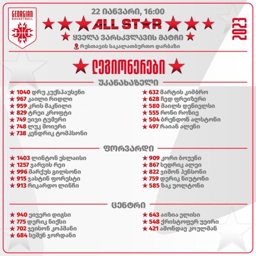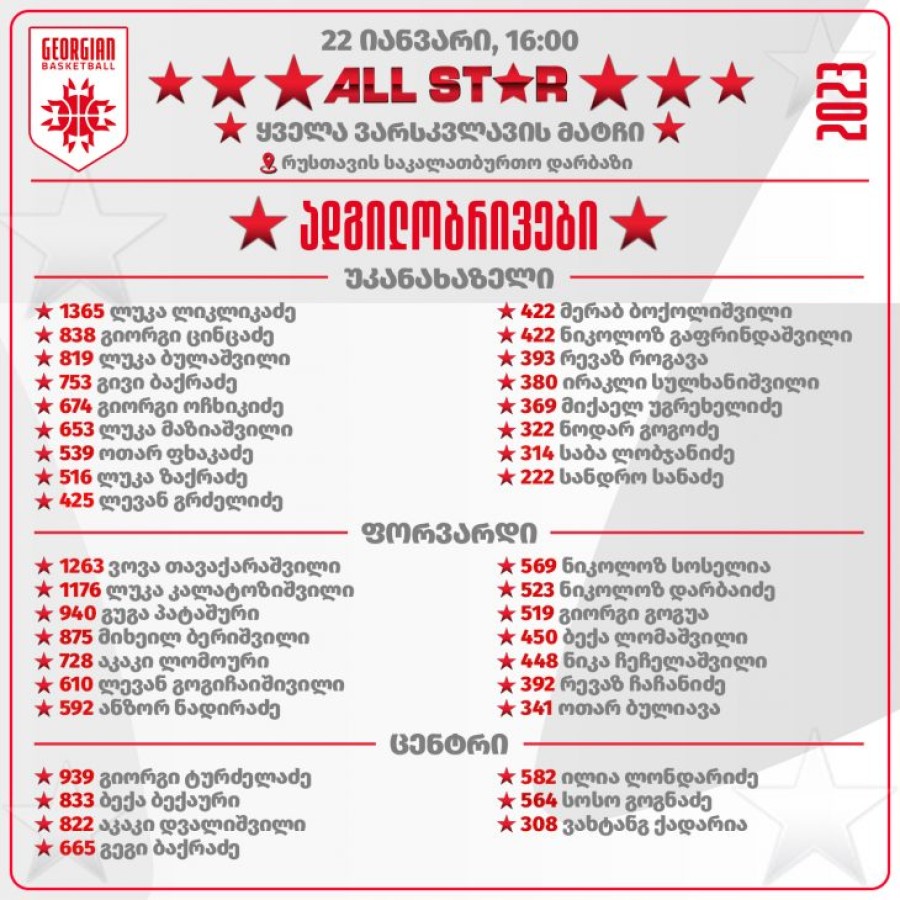✅ გულშემატკივრებს ხმის მიცემა დღეში ერთხელ, საქართველოს კალათბურთის ეროვნული ფედერაციის ოფიციალურ ვებ-გვერდზე შეეძლებათ ➡ superleague.ge/allstar/vote