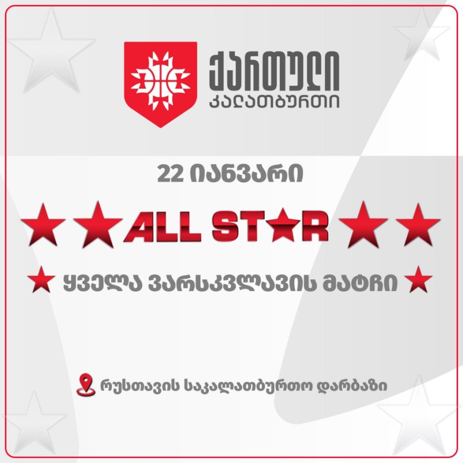 All Star-ი 22 იანვარს, 16:00 საათზე, რუსთავის საკალათბურთო დარბაზში გაიმართება და მაყურებელთათვის დასწრება თავისუფალია.