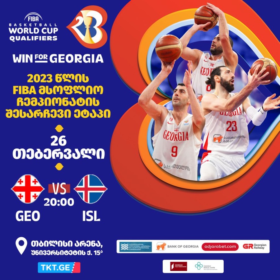 საქართველოს კალათბურთის ეროვნულ ნაკრებს მსოფლიო ჩემპიონატზე მოხვედრის ისტორიული შანსი აქვს. 2023 წლის მსოფლიო ჩემპიონატის საკვალიფიკაციო ეტაპის გადამწყვეტ თამაშში ჩვენი ნაკრები ისლანდიას „თბილისი არენაზე“ (უნივერსიტეტის ქუჩა 15ა) 26 თებერვალს, 20:00 საათზე დაუპირისპირდება. თამაშზე დასასრები ბილეთების გაყიდვა, tkt.ge-ზე უკვე დაიწყო!