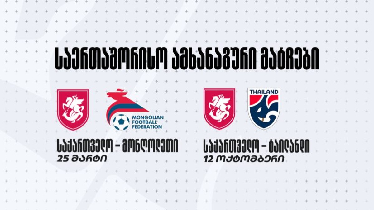 საქართველო - მონღოლეთის მატჩი 25 მარტს, ბათუმი არენაზე შედგება. საქართველო - ტაილანდის მატჩის მასპინძელი სტადიონი მოგვიანებით გახდება ცნობილი.