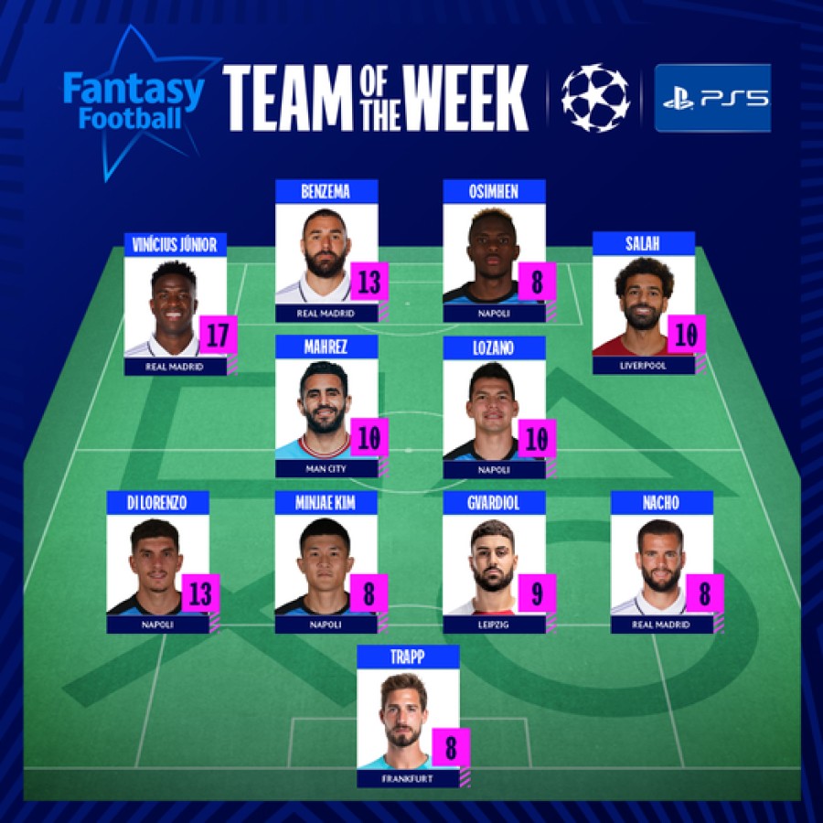 ჩემპიონთა ლიგის კვირის სიმბოლური ნაკრები ცნობილია, რომელიც Fantasy Football-ის ქულების მიხედვითაა შედგენილი.