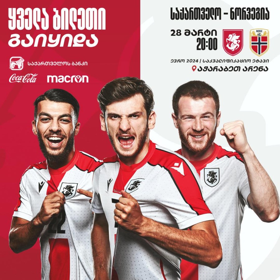 საქართველოსა და ნორვეგიის ნაკრებთა მატჩზე დასასწრები ყველა ბილეთი გაიყიდა. ინფორმაცია ფეხბურთის ფედერაციის პრესსამსახურმა დაადასტურა.