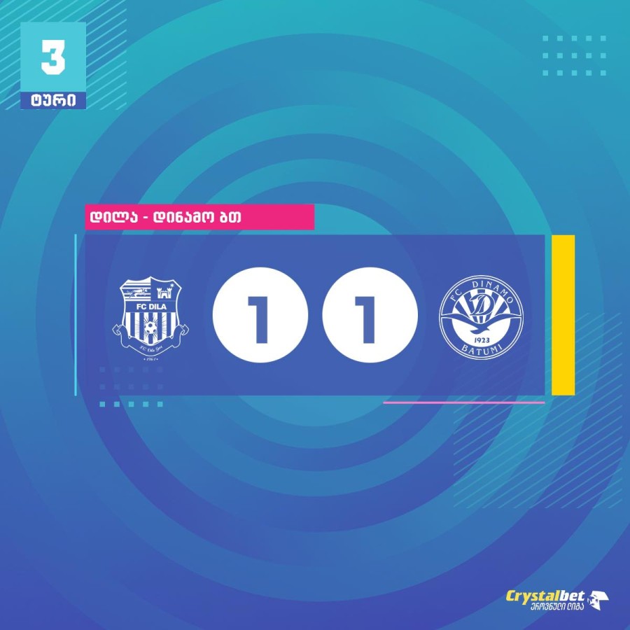 საქართველოს ეროვნული ლიგის მესამე ტურში გორში დასრულდა, სადაც „დილამ“ „დინამო ბათუმს“ უმასპინძლა. თამაში დაძაბული გამოვიდა და გუნდებმა ქულები გაიყვეს. გორის „დილა“ ძალიან სწრაფად, მესამე წუთზე ტიერი გეილის გოლით დაწინაურდა და ანდრეი დემჩენკოს გუნდი კარგა ხანს ინარჩუნებდა უპირატესობას.