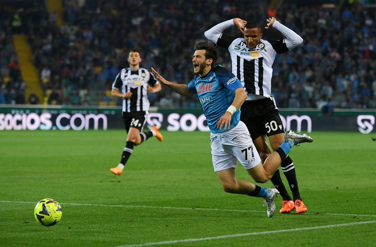 „ნაპოლისთვის“ თამაში ცუდად დაიწყო, რადგან სანდი ლოვრიჩის მე-13 წუთზე გატანილი გოლით „უდინეზე“ დაწინაურდა. უდინელთა გამარჯვება კი ნეაპოლელთა ფიესტის კიდევ ერთხელ გადადებას ნიშნავდა, მაგრამ მეორე ტაიმის დასაწყისში ლუჩანო სპალეტის გუნდმა ანგარიში გაათანაბრა, რაშიც ხვიჩა კვარაცხელიას დიდი წვლილია.