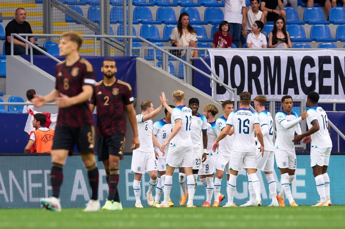 პარალელურად ბათუმში, ინგლისმა, რომელსაც პირველი ადგილი განაღდებული ჰქონდა, მოტივირებული გერმანია კემერონ არჩერისა და ჰარვი ელიოტის საწყის 20 წუთში გატანილი გოლებით ძალიან იოლად დაამარცხა. ამრიგად, ინგლისი 9 ქულით და გოლგაუშვებლად გავიდა ჯგუფიდან, ხოლო გერმანია, რომელიც წინა ჩემპიონატის გამარჯვებული იყო, უსახელოდ, უფერულად, კინკილა ქულით და ბოლო ადგილით დაემშვიდობა ტურნირს. აღსანიშნავია, რომ მატჩს ბათუმში ინგლისის ეროვნული ნაკრების მწვრთნელი გარეთ საუთგეიტი დაესწრო.