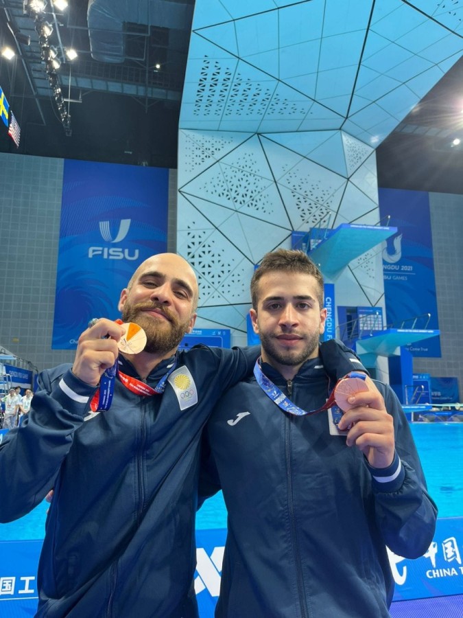 ქართველმა წყალში მხტომელებმა სანდრო მელიქიძემ და თორნიკე ონიკაშვილმა ჩინეთის ქალაქ ჩენგდუში მიმდინარე მსოფლიოს საუნივერსიტეტო თამაშებზე ბრინჯაოს მედალი მოიპოვეს.