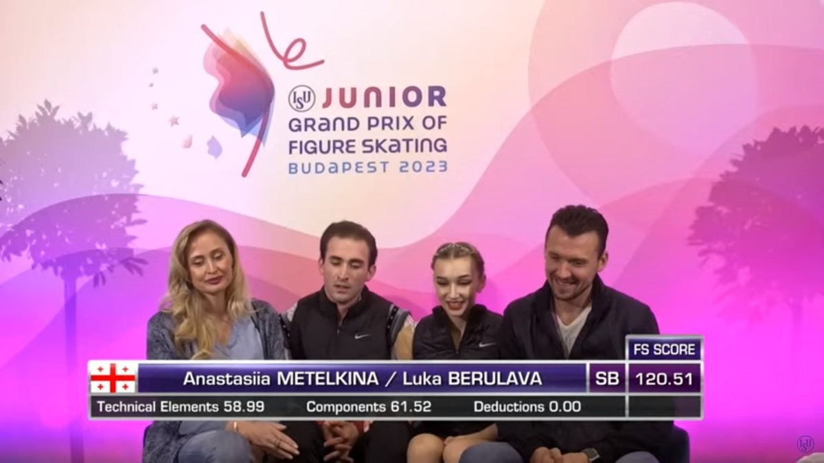 ბუდაპეშტში იუნიორთა შორის გრან პრის მე-5 ეტაპზე გათამაშდა მედლების პირველი კომპლექტი სპორტულ წყვილებში. ჩვენმა სპორტსმენებმა ანასტასია მეტელკინა და ლუკა ბერულავამ ორი პროგრამის ჯამში 190,45 ქულა მოიპოვეს და 1-ლი ადგილი და ოქროს მედლები დაიმსახურეს.