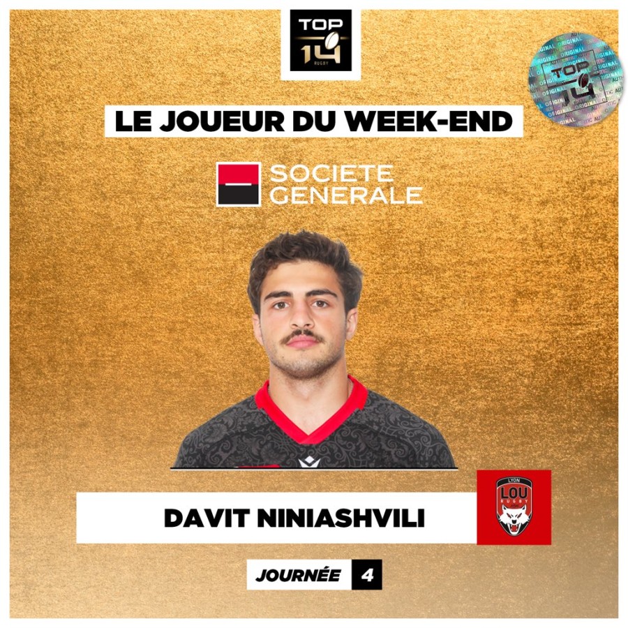 საქართველოს ნაკრებისა და „ლიონის“ მორაგბე დავით ნინიაშვილი საფრანგეთის ტოპ 14-ის მეოთხე ტურის საუკეთესო მოთამაშედ დასახელდა.